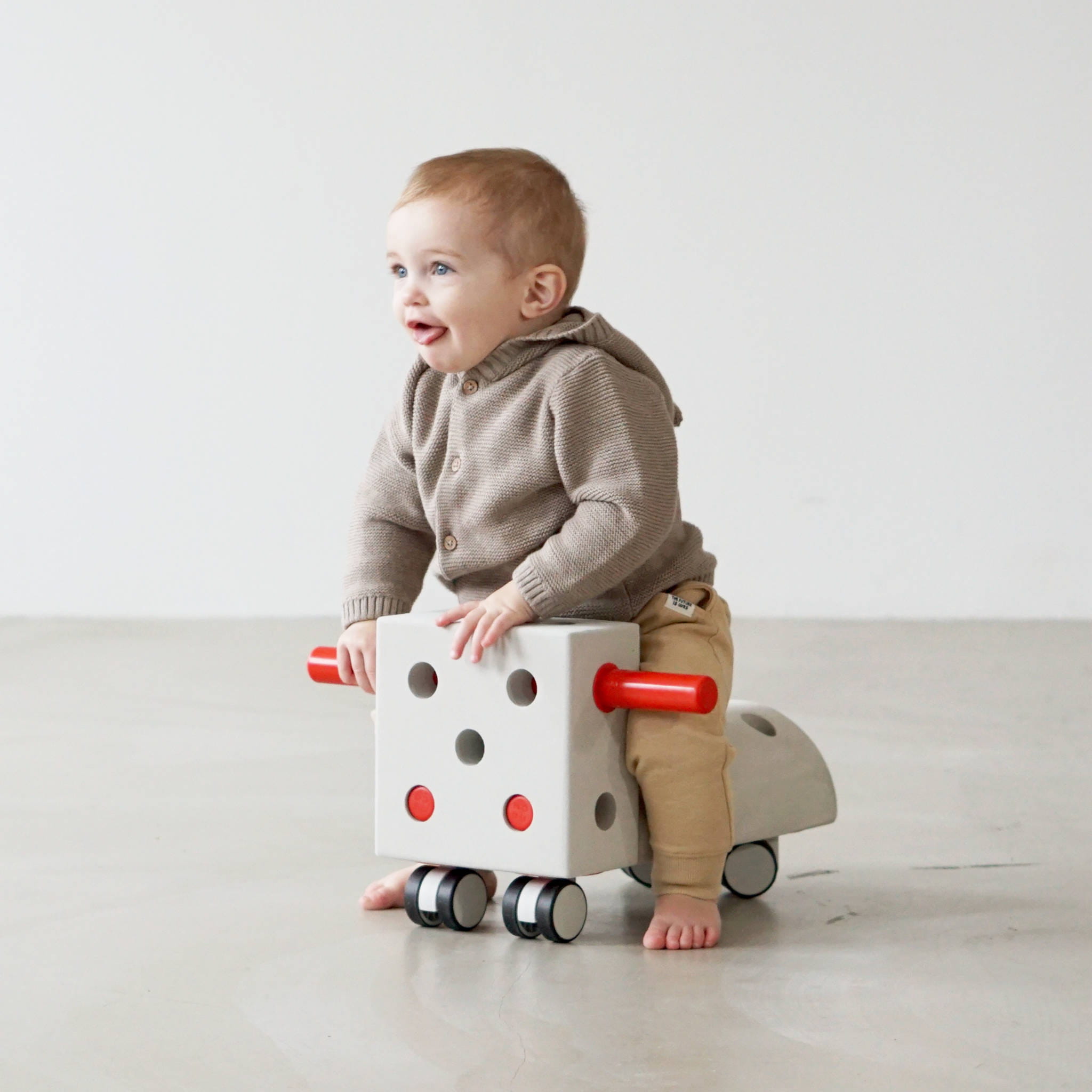 Czas na przejażdżkę! Nowy element zestawów MODU – Tiny Ride – zapewni Twojemu maluchowi mnóstwo świetnej zabawy i ruchu, rozwijając przy tym jego motorykę i dając pole do popisu wyobraźni dziecka. Dzięki lekkiej konstrukcji i obracającym się o 360 kółkom Tiny Ride jest bardzo mobilny i łatwy do prowadzenia przez najmłodszych kierowców. Pełna swoboda przemieszczania się we wszystkich kierunkach angażuje całe ciało malucha do sterowania pojazdem, rozwijając jego poczucie równowagi, siłę i koordynację. To doskonałe wprowadzenie do jazdy na rowerku biegowym. Kiedy dziecko podrośnie, możecie zmodyfikować pojazd, dodając więcej bloczków albo wykorzystać go jako jeden z elementów swojej kolekcji do konstruowania.