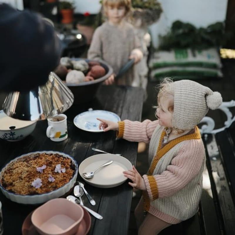 Przepiękne płaskie talerzyki z kolekcji Mushie, które idealnie pasują do silikonowych śliniaków Mushie.