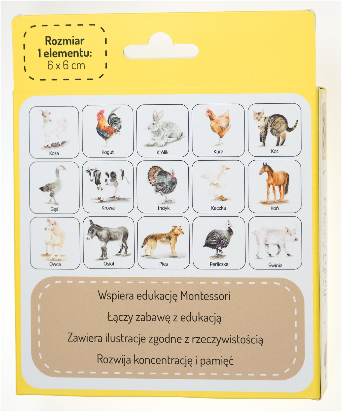 Dzięki realistycznym ilustracjom zwierząt, gra wspiera edukację Montessori, a białe tło zwiększa skupienie uwagi u dzieci.