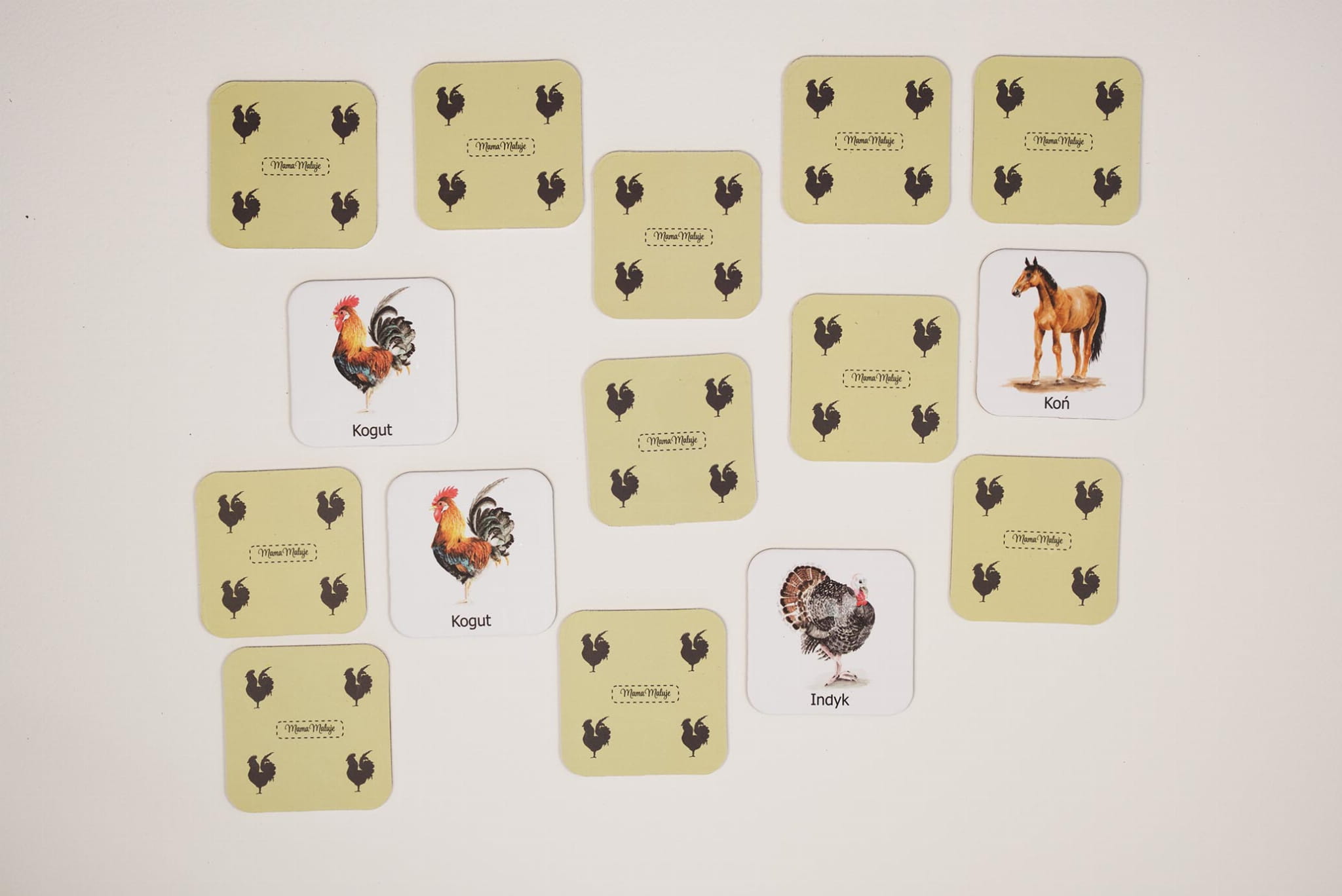 Karty z gry memo mogą stanowić również pomoc do nauki rozpoznawania zwierząt przez małe dzieci.