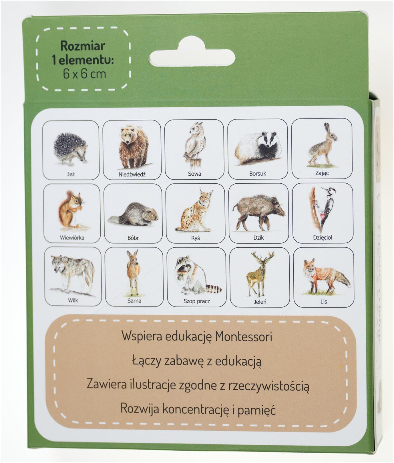 Dzięki realistycznym ilustracjom zwierząt, gra wspiera edukację Montessori, a białe tło zwiększa skupienie uwagi u dzieci.