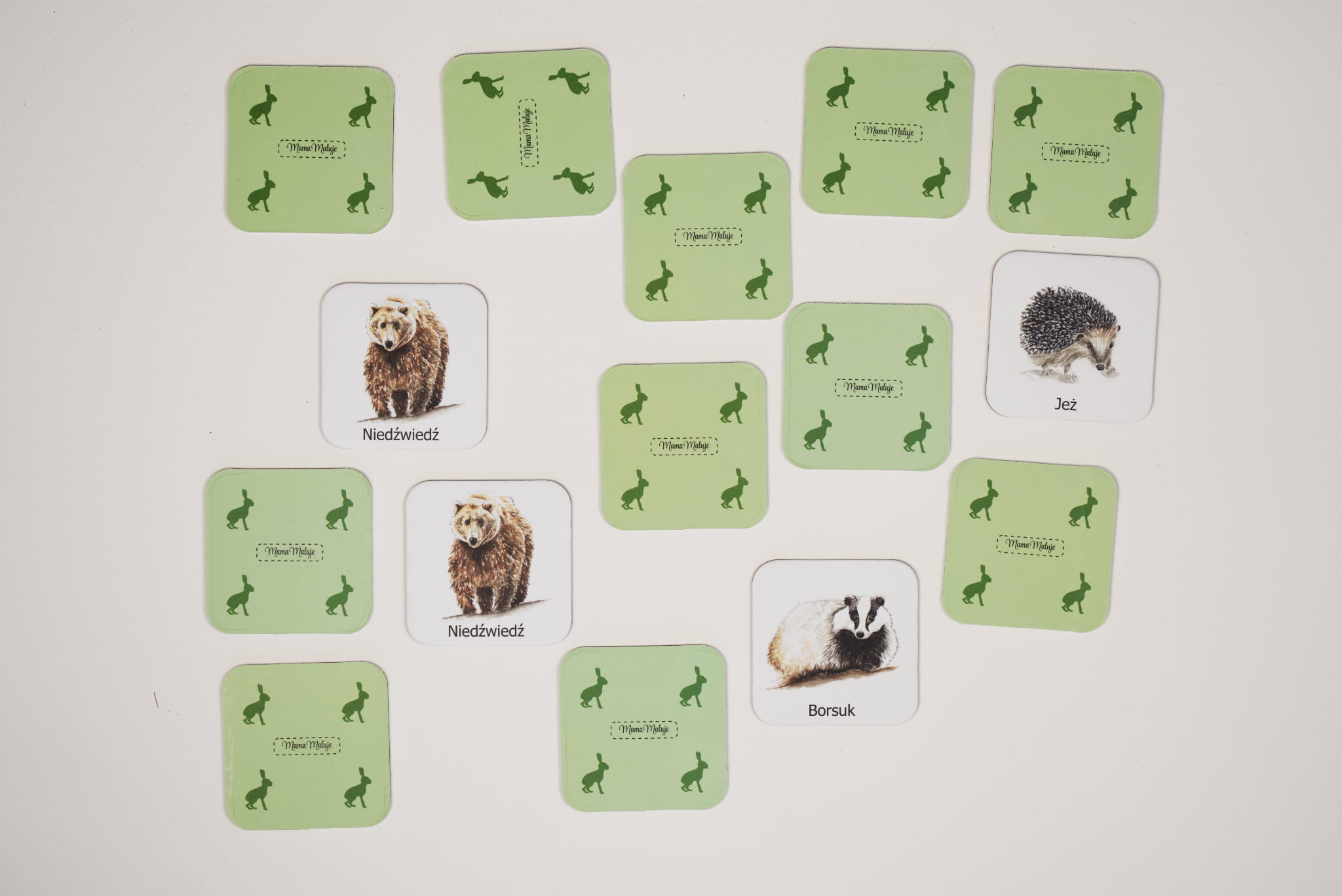 Karty z gry Memo mogą stanowić również pomoc do nauki rozpoznawania zwierząt przez małe dzieci.