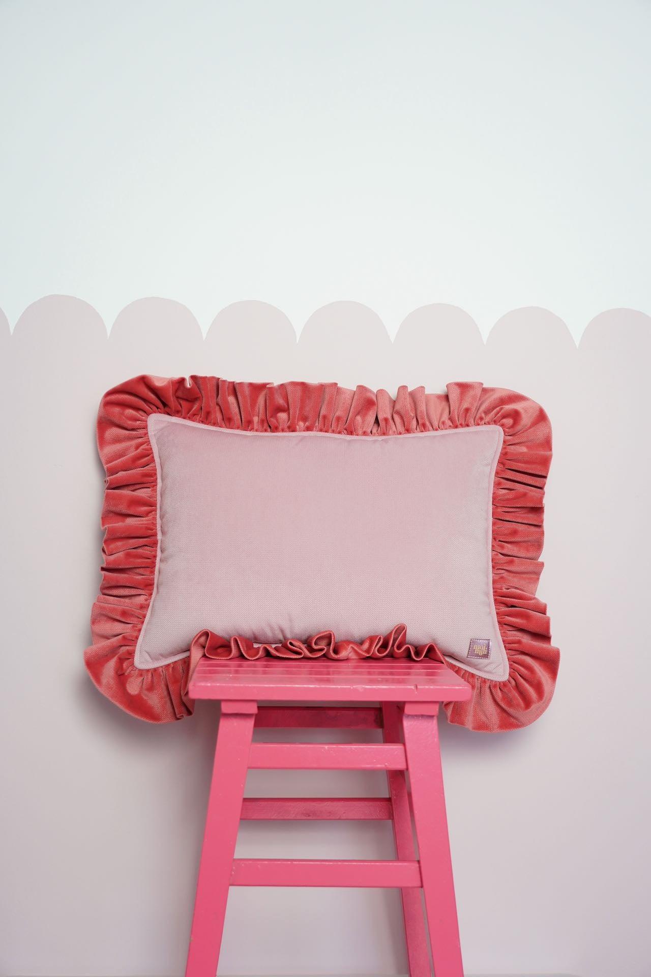 MoiMili - Dekoracyjna, welwetowa poduszka z falbanką "Malinowe smoothie"