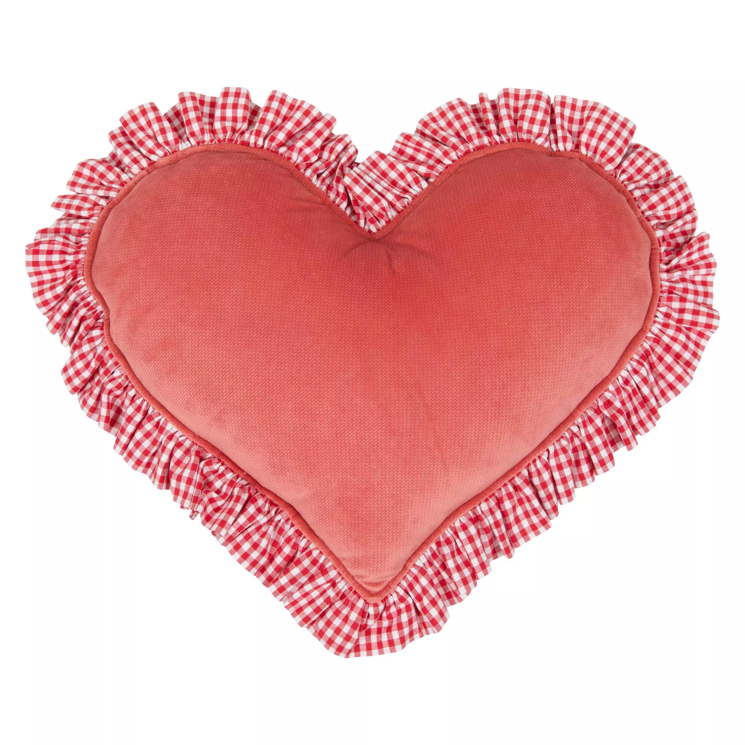 Dodaj Poduszkę serce z falbanką "Koralowe wnętrze" do swojego wnętrza i ciesz się przytulnym, romantycznym klimatem każdego dnia!