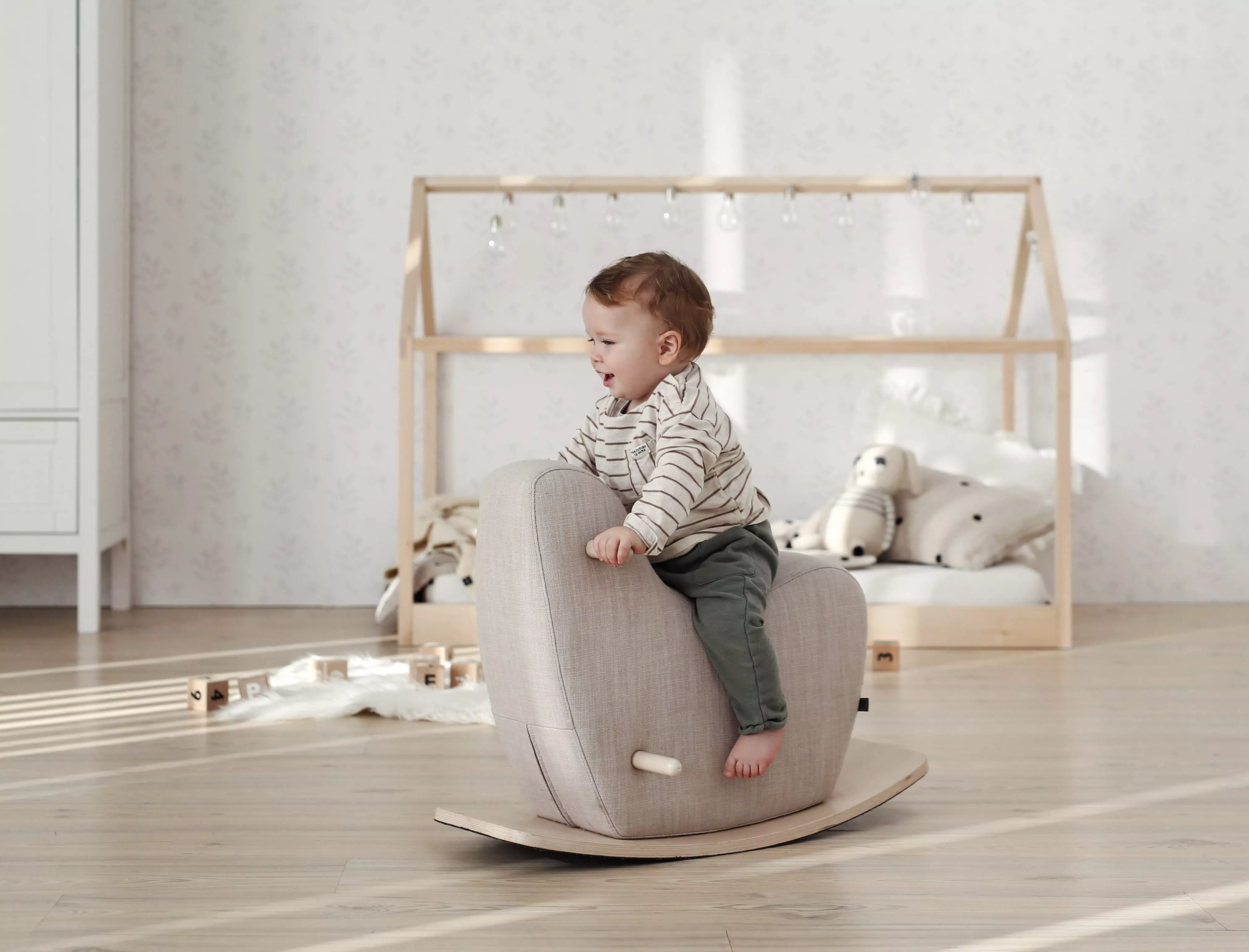 Nasz "Miękki Lniany Konik Bujany OOH NOO" to idealna designerska zabawka dla maluchów, która łączy tradycyjną zabawę bujanymi konikami z nowoczesnym stylem i bezpieczeństwem. Ten bujany konik został starannie zaprojektowany, aby dostarczać najmłodszym dzieciom zabawę, komfort i bezpieczeństwo.