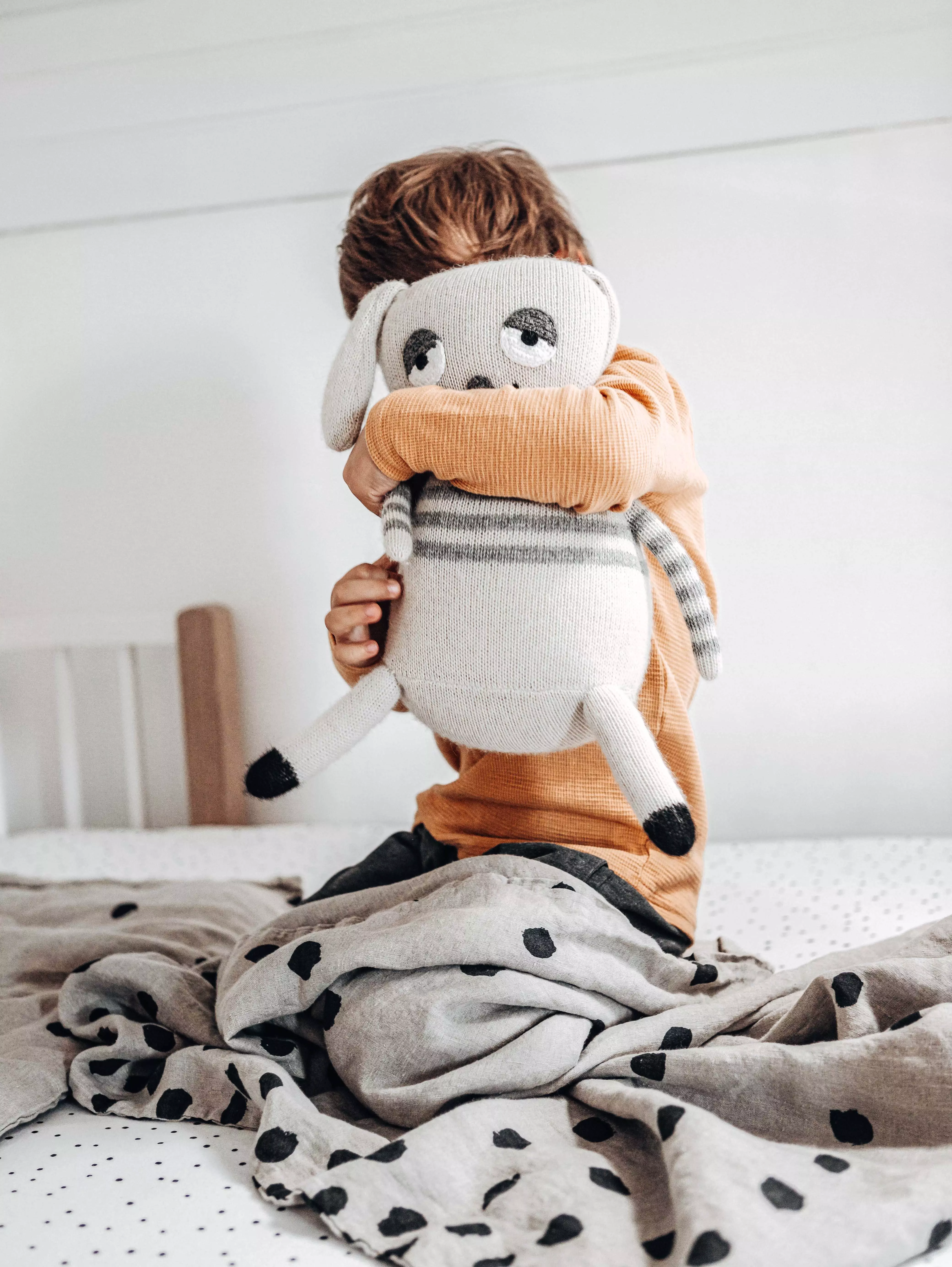 Szukasz idealnej przytulanki dla swojego dziecka? Prezentujemy mięciutkiego pieska pluszowego Lazy Dog od Ooh Noo! Ten uroczy piesek wykonany jest z 100% wełny z młodej alpaki (baby alpaca wool), co sprawia, że jest on niezwykle miękki i doskonały do przytulania. To nie tylko zabawka, to towarzysz Twojego dziecka, który pomoże mu się uspokoić przed snem.