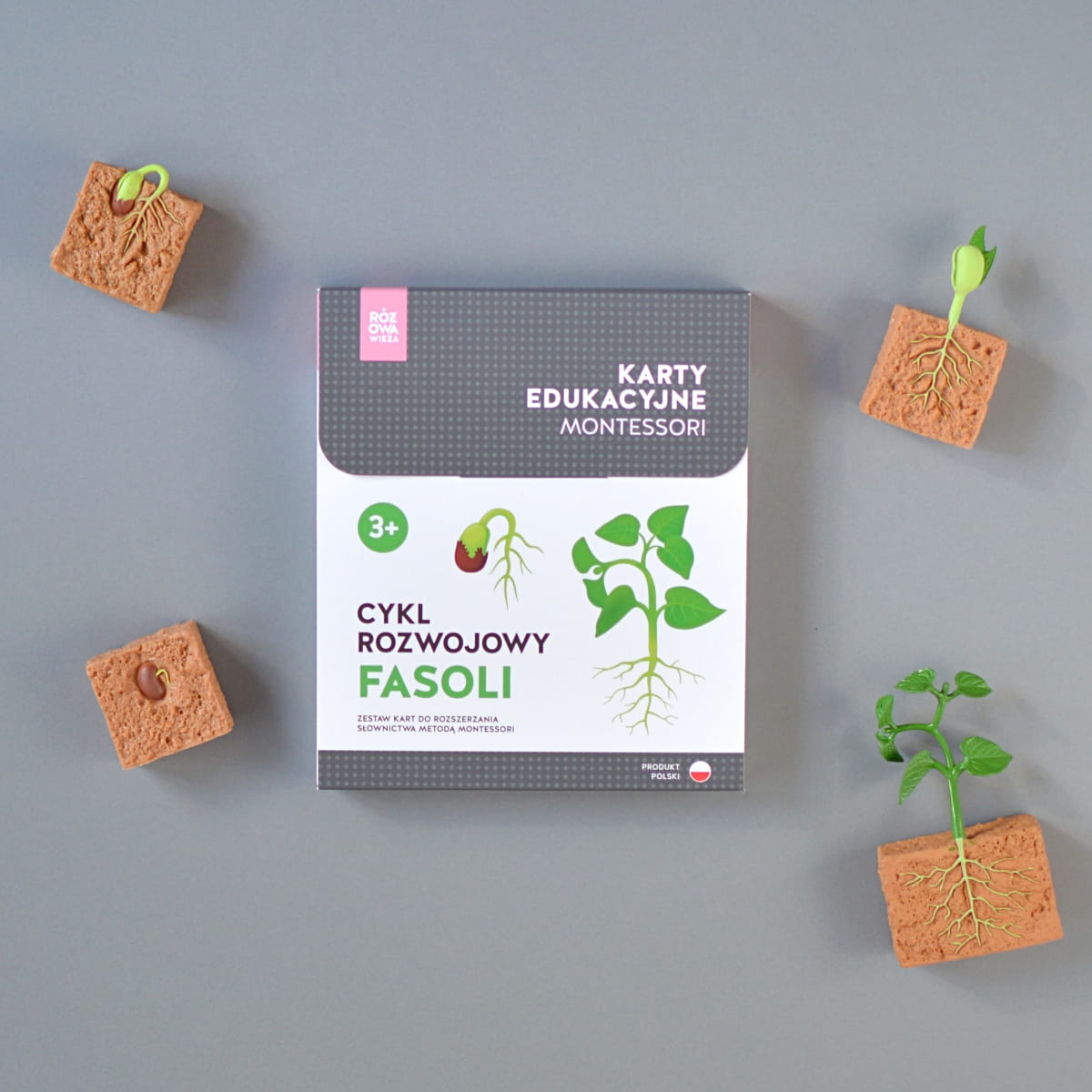 RÓŻOWA WIEŻA - Karty edukacyjne - Cykl rozwojowy fasoli + figurki