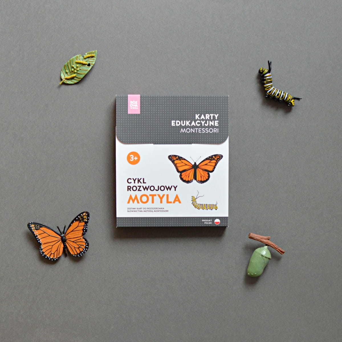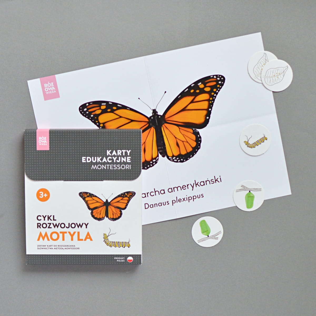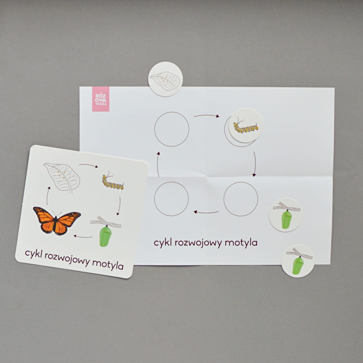 RÓŻOWA WIEŻA - Karty edukacyjne - Cykl rozwojowy motyla + figurki