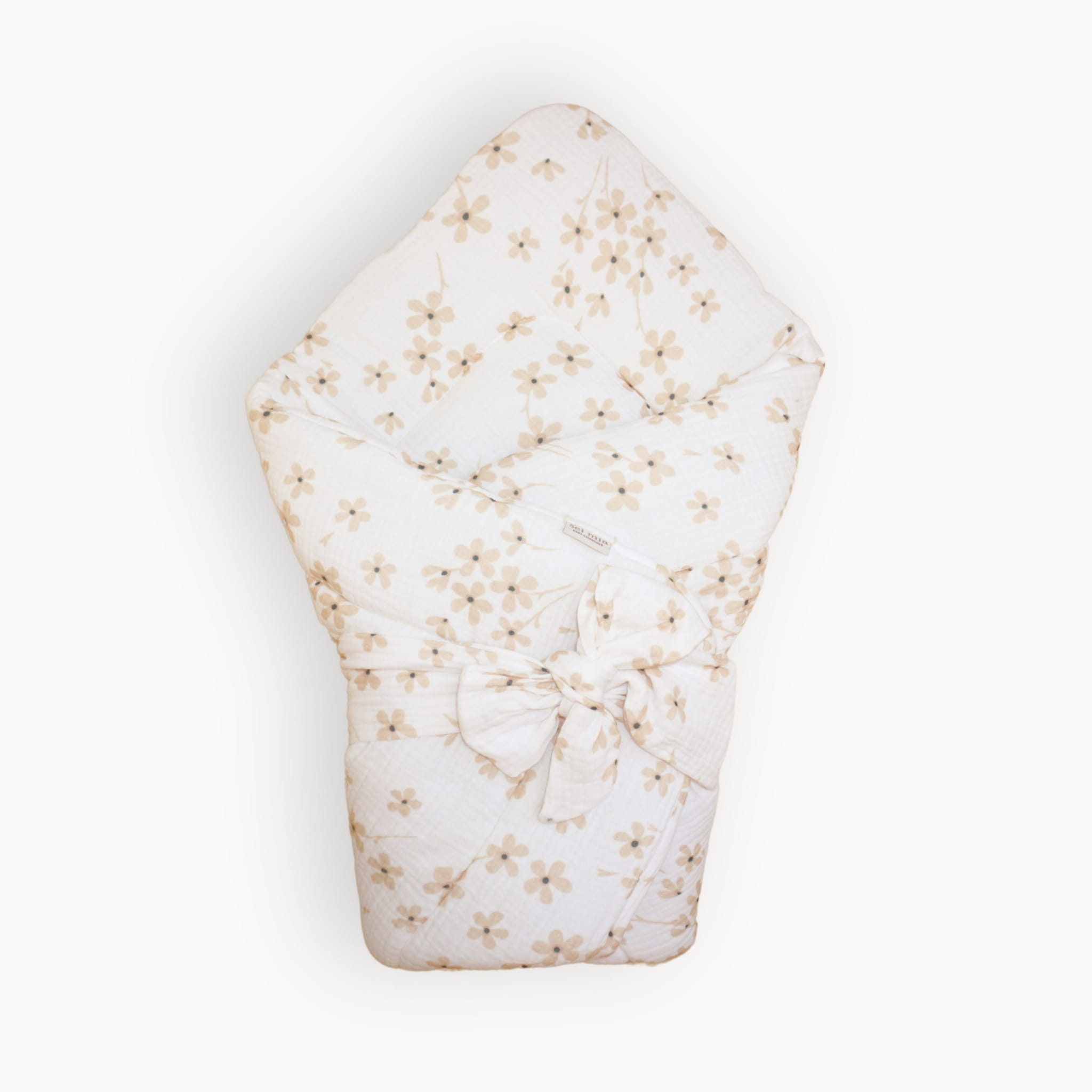 - Naturalny materiał – Muślin bawełniany, znany z lekkości i miękkości, pozwala skórze oddychać, zapobiegając przegrzaniu.