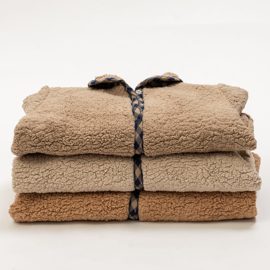 Zasady pielęgnacji: można prać w pralce w temperaturze max. 40° oraz delikatnie prasować, nie należy stosować wybielaczy. Dla utrzymania puszystości baranka można podsuszyć kurteczkę w suszarce na delikatnym programie, nie susząc jej całkowicie.