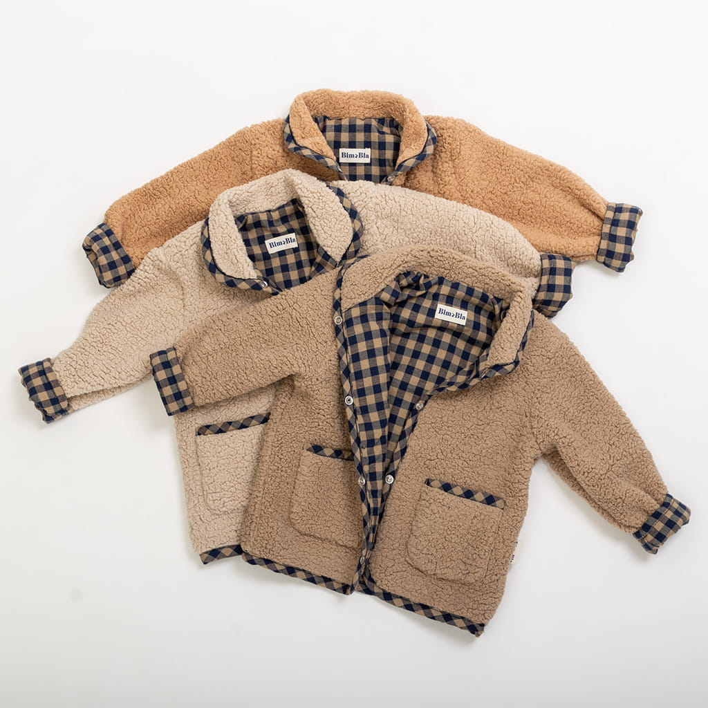Przejściowa kurteczka Willow z miękkiej tkaniny w stylu „sherpa”. Kurteczka wykończona jest podszewką w krateczkę, ma dwie kieszonki i uroczy kołnierzyk. Zapięcie na napy ułatwi ubieranie malucha. Kurteczka dostępna jest w trzech kolorach: