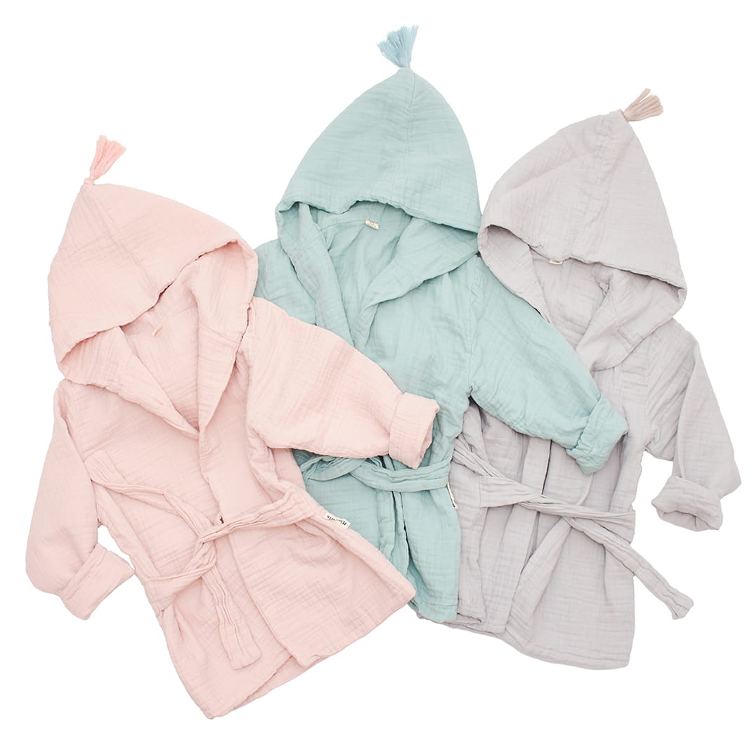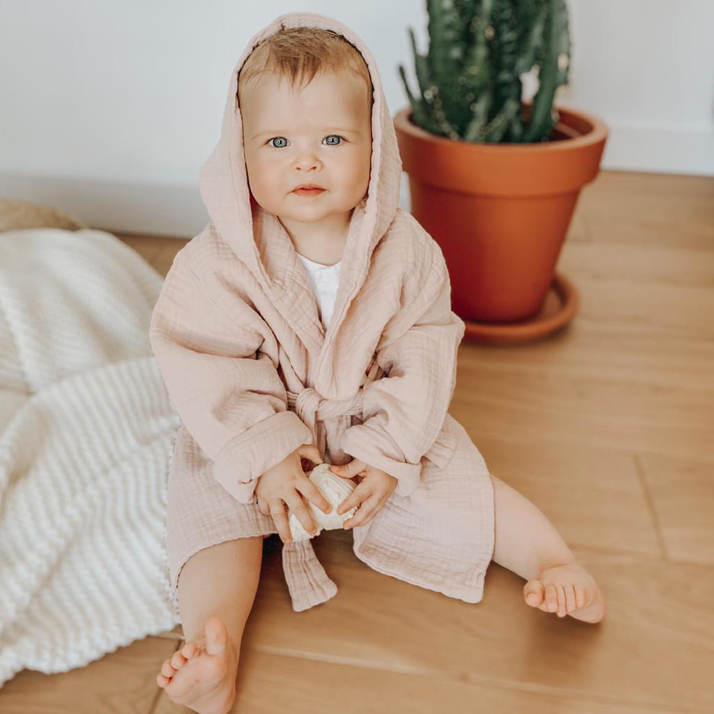 Szlafroczek dziecięcy uszyty z delikatnego podwójnego muślinu bawełnianego.