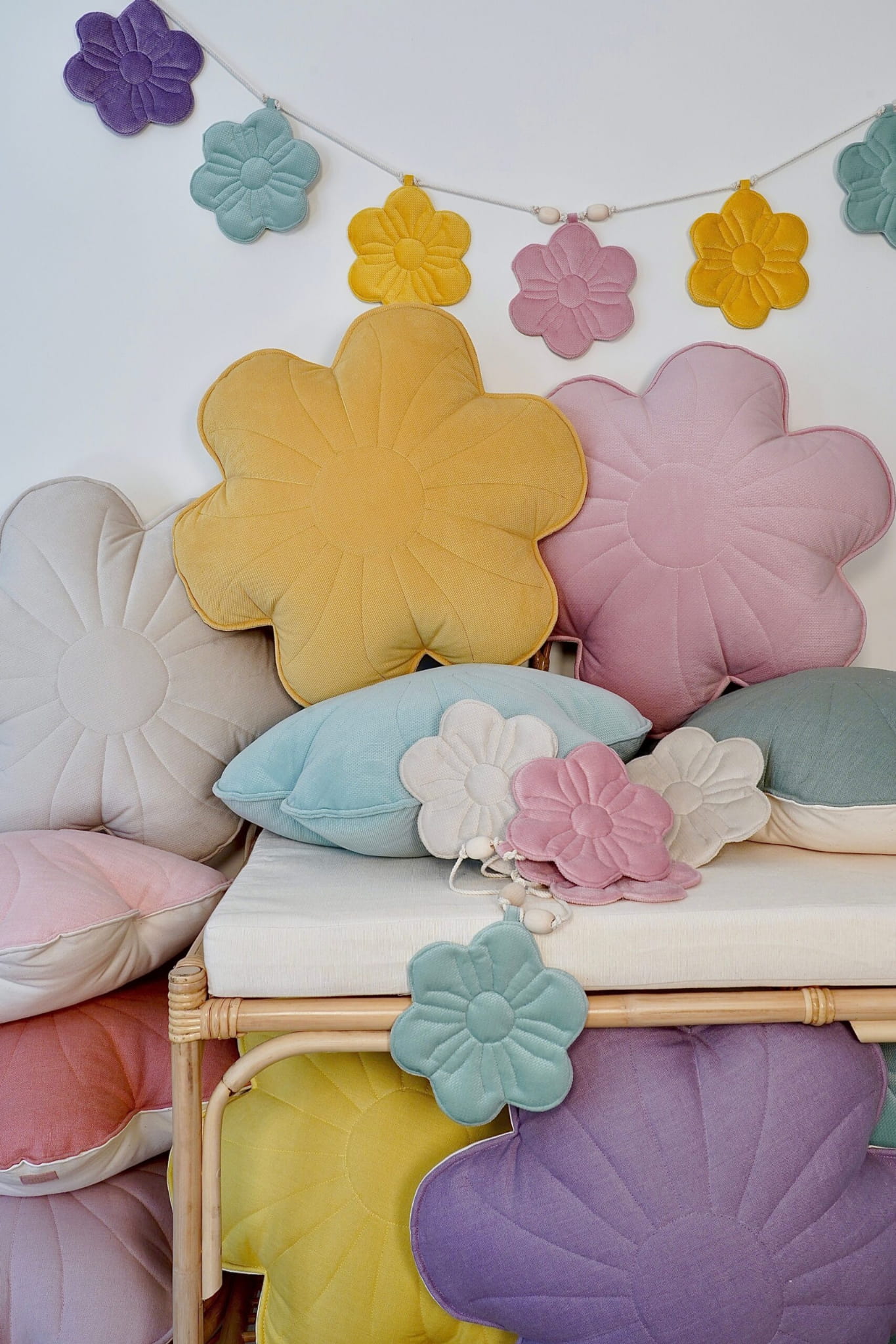 Wspaniale jest, nie tylko wiosną, budzić się i bawić w kwitnącym domu. Kwiaty kochają łąki, ogrody i… Moi Mili!Tej wiosny z nami Twój dom ożywi się i zamieni w kwitnący ogród.Twórzcie rozmaite bukiety z lnianych i welwetowych kwiatów z wiosennej kolekcji Moi Mili: poduszek, mat i girland, które kochają dom!Girlandy dekorują każde wnętrze. Mogą posłużyć jako część scenografii teatrzyku, przyjęcia urodzinowego, balu karnawałowego. Potrafią zmienić dziecięcy pokój w magiczne królestwo, rozkręcić kinder party, stworzyć baśniową atmosferę do czytania książki przed snem.Girlandy to wspaniały dodatek do baldachimu, tipi, łóżeczka, dekoracji ściany, okna.Starannie wykonane girlandy Moi Mili, z zawieszkami w formie kwiatów w delikatnych odcieniach inspirowanych naturalnymi kolorami roślin, szczególnie pasują do jasnych, pastelowych wnętrz.