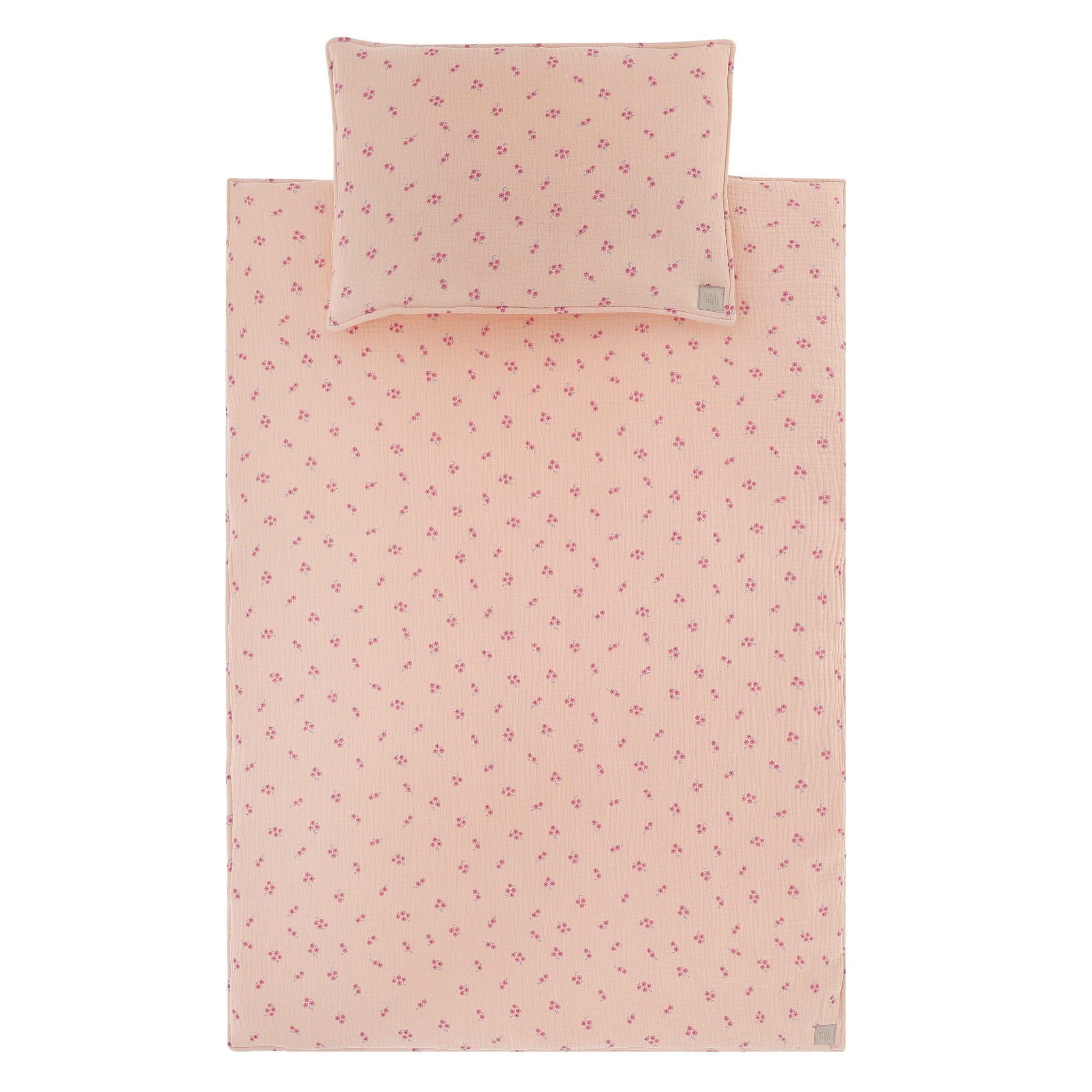 MoiMili - Muślinowy komplet pościeli dla niemowlaka w kwiaty "Różowa niezapominajka"