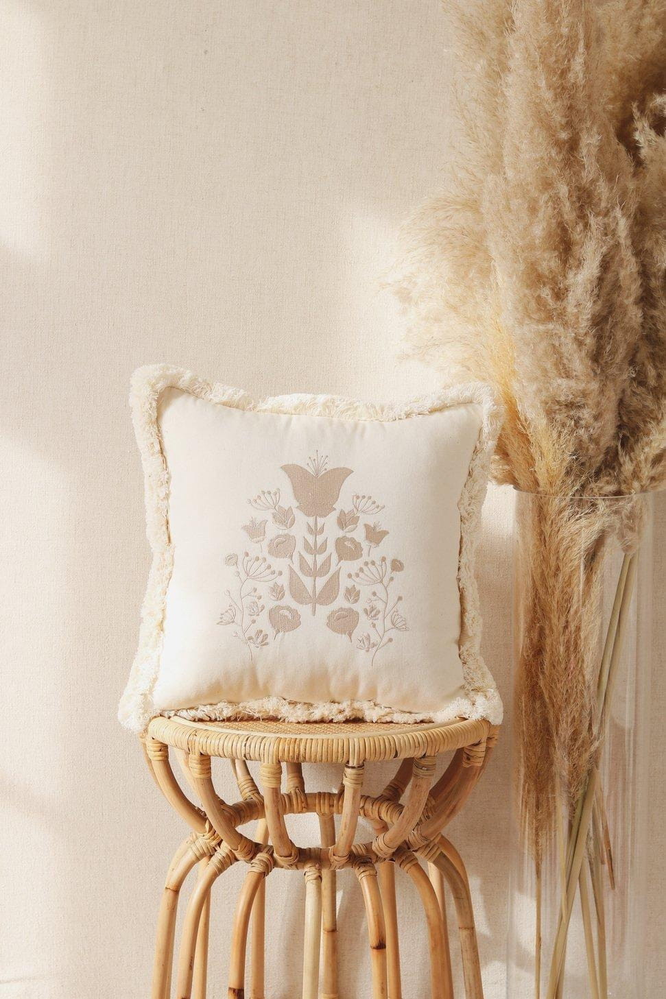 Oryginalna bawełniana poducha Moi Mili z pięknym autorskim haftem to nasza propozycja na dekorację, nie tylko dziecięcego łóżka, lecz także salonu czy sypialni. Poduszka ta jest idealna do naszego namiotu z falbanami "Boho". Poduszka została solidnie wykonana i uszyta z wysokiej jakości tkaniny bawełnianej. Zachęcamy do tworzenia poduszkowych kompozycji z dostępnych wzorów.W środku poduszka wypełniona jest wysokiej jakości antyalergiczną kulką silikonową. Można ją śmiało prać w pralce, wkład nie traci puszystości i elastyczności.Tkanina: 100 % Bawełna (certyfikat OEKO-TEX®).Temperatura prania: do 30 C.Rozmiar 40 x 40 cm.