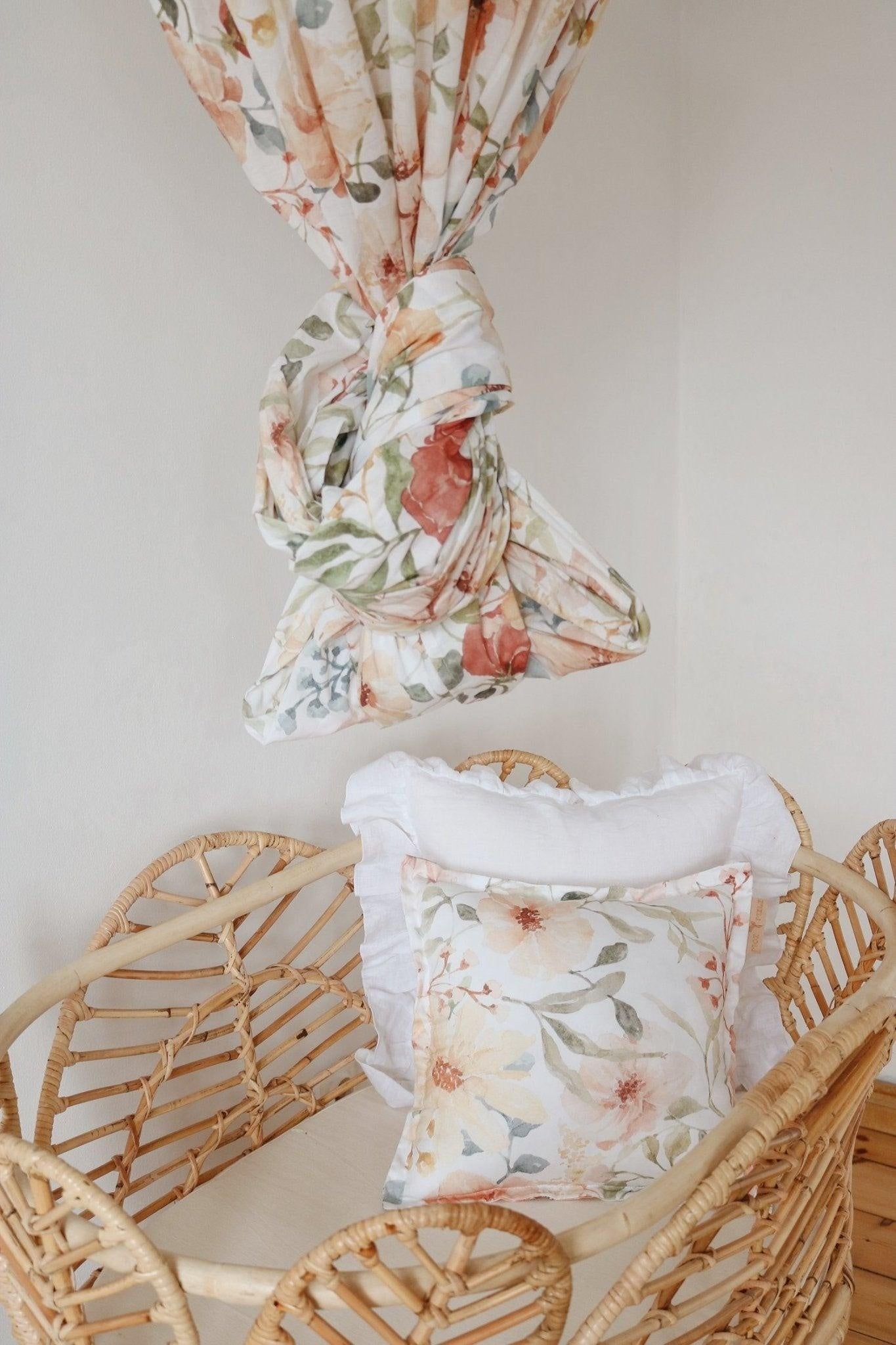 Poduszka z pięknym kwiatowym motywem w pastelowych kolorach. Solidnie uszyta z wysokiej jakości tkaniny bawełnianej.