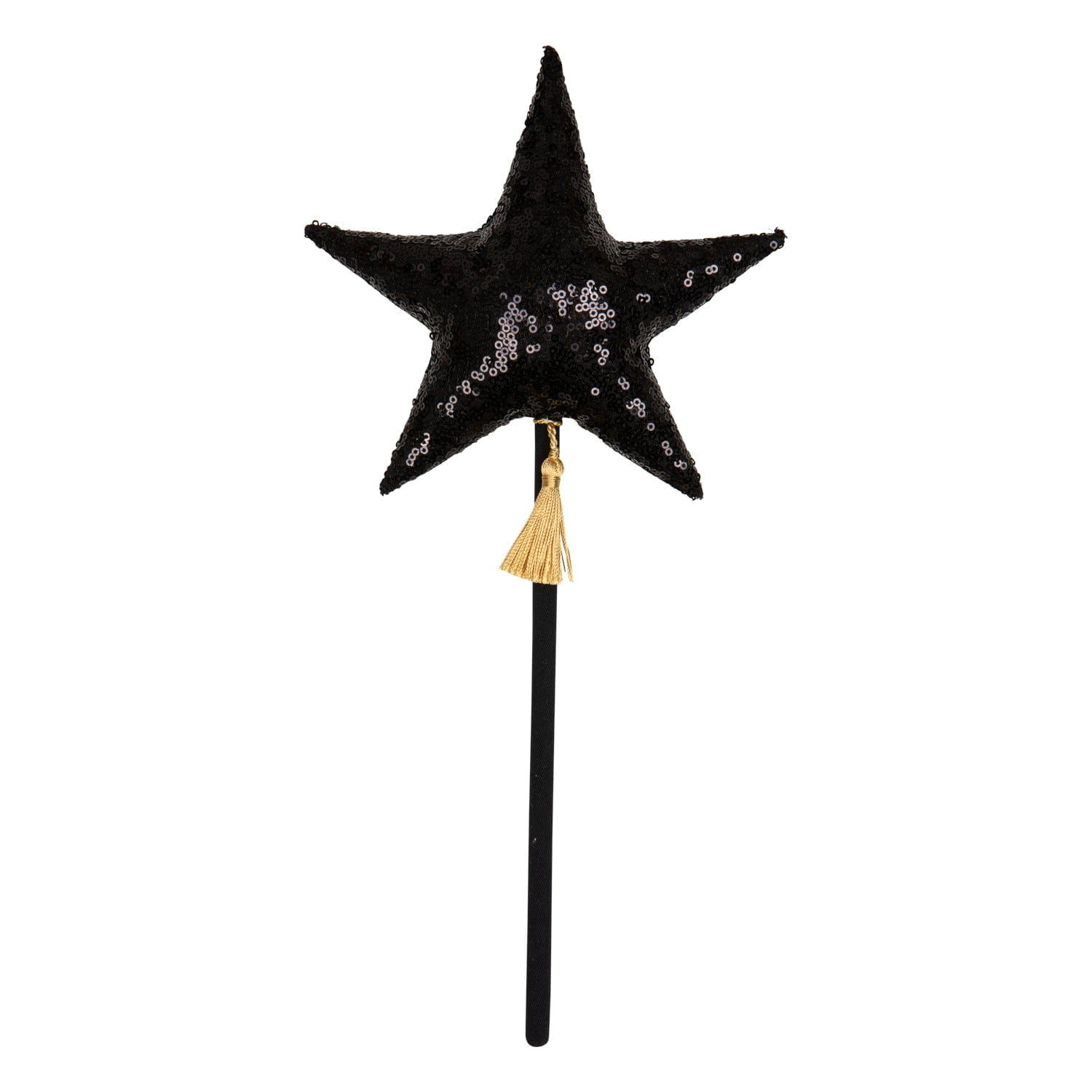 Różdżka została starannie wykonana z bawełny obszytej czarnymi cekinami oraz sosnowego patyczka. Gwiazda przyszyta jest do nóżki, a całość delikatnie ozdobiona pięknym chwostem.
