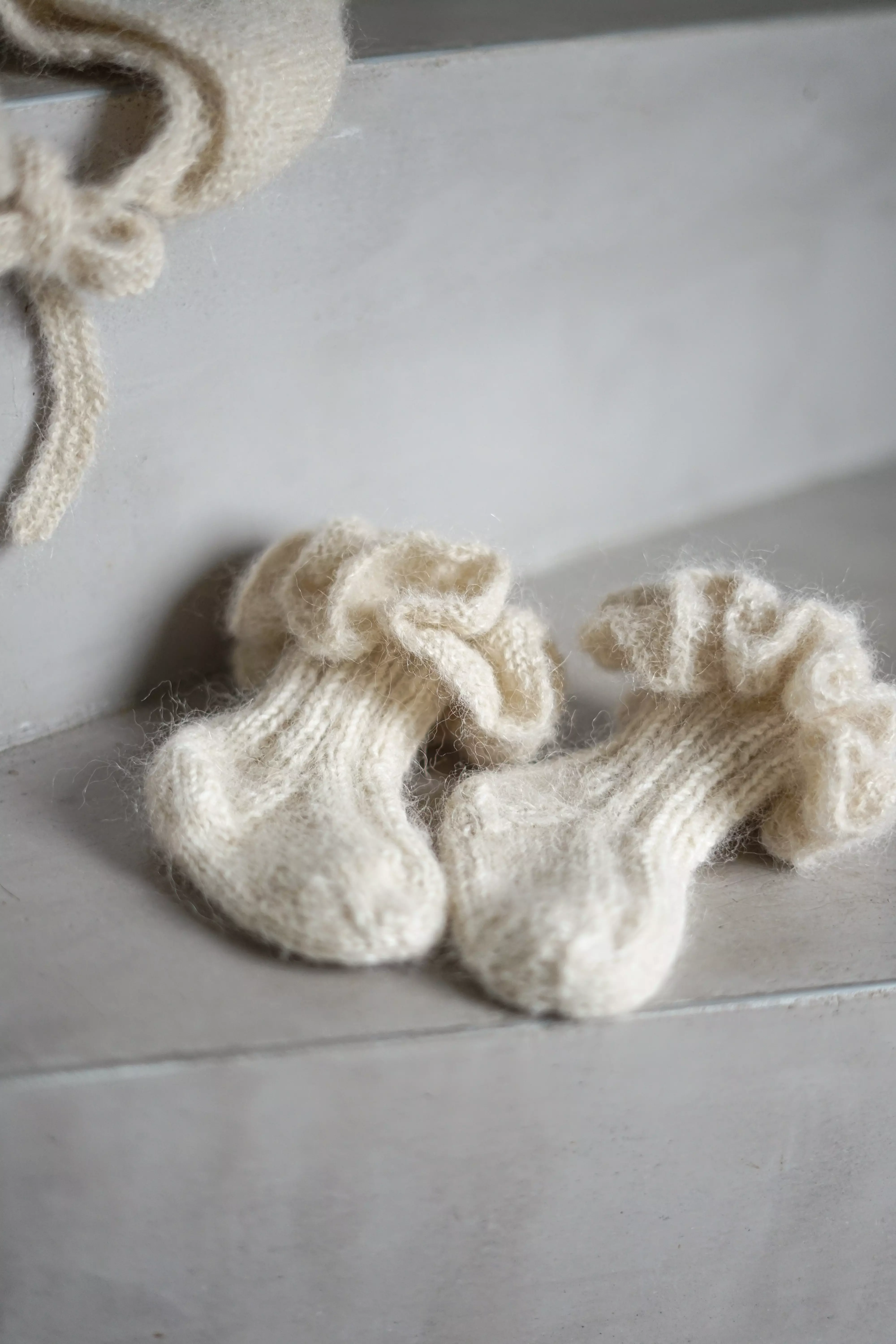 NATUREL.MINI - Skarpetki niemowlęce z falbanką z Alpaki i Jedwabiu