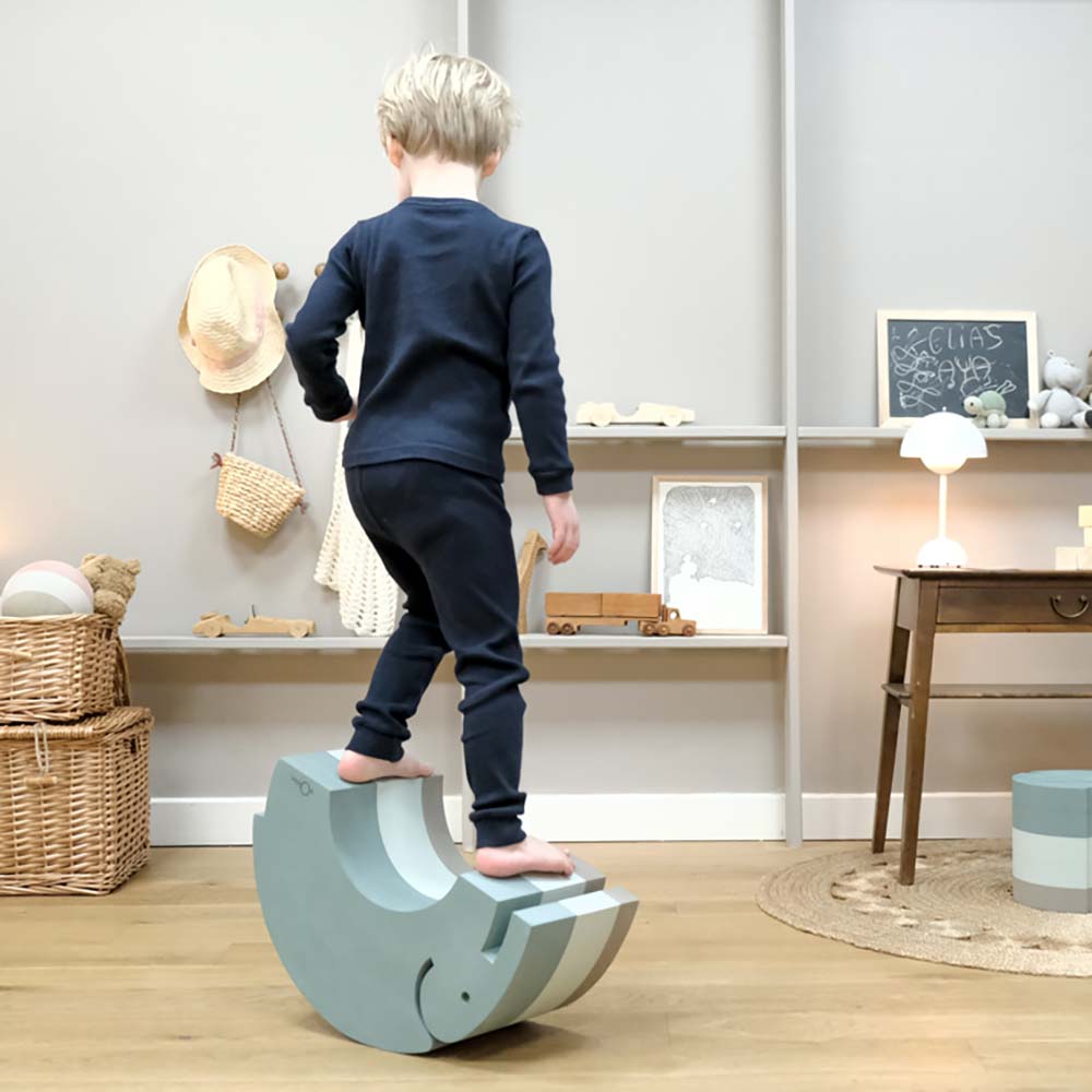 Elephant M to doskonały produkt do przewracania dla dzieci w każdym wieku, a dzięki swojemu eleganckiemu designowi i pięknym kolorom, z pewnością zdobędzie serca maluchów. Położenie na zaokrąglonym grzbiecie słonia bObles to doskonały sposób na wzmocnienie szyi noworodka. Starsze dziecko może stymulować rozwój pleców, kołysząc się w brzuchu słonia. Gdy dziecko nauczy się chodzić, może trenować wstawanie, korzystając z wsparcia, jakie oferuje bObles Elephant.