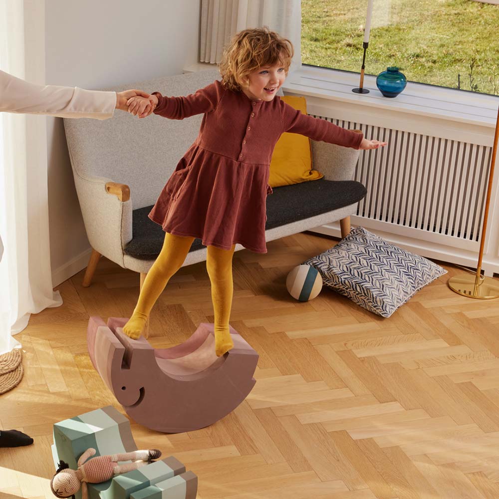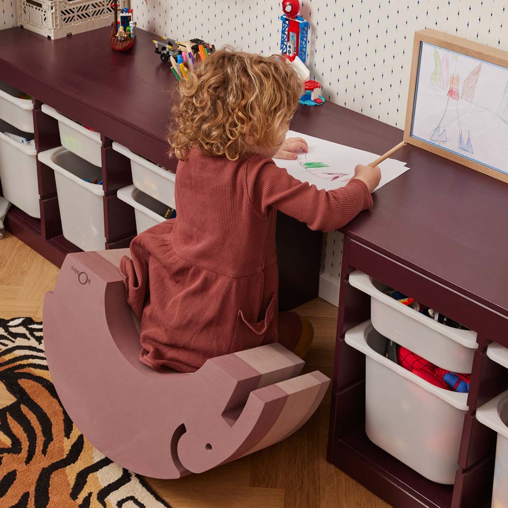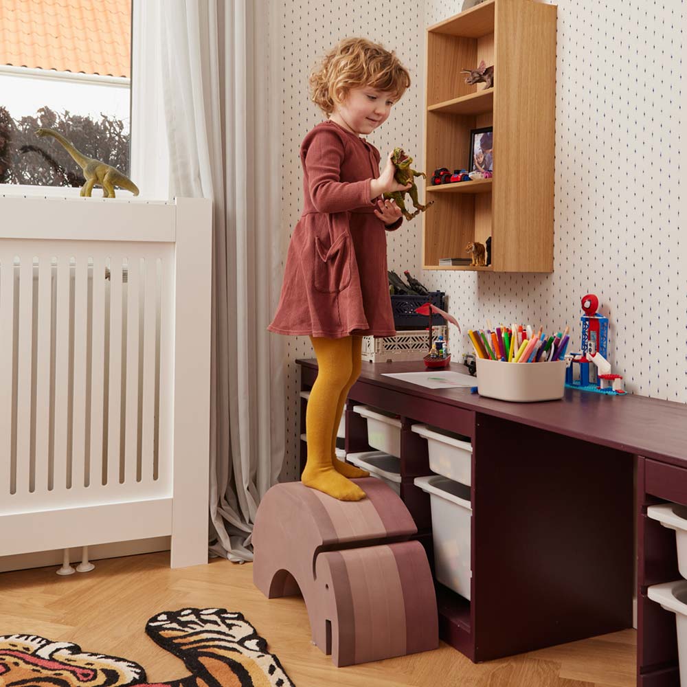 Dzięki miękkiej powierzchni i materiałowi Elephant nie zaszkodzi ani dziecku, ani podłodze w salonie. Elephant stał się już ikonicznym elementem mebli w klasycznym duńskim designie. Dzięki wielu funkcjom, Elephant staje się integralną częścią dekoracji zarówno w pokoju dziecięcym, jak i w salonie, kuchni czy łazience.