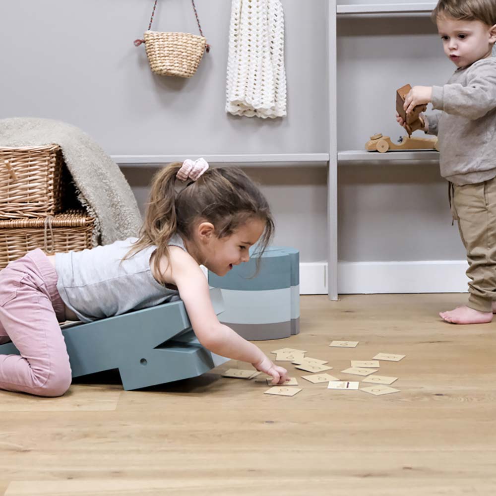 Krokodyl bObles szybko stał się jednym z naszych bestsellerów i to z dobrego powodu! Krokodyl będzie się rozwijał razem z twoim dzieckiem, od niemowlęcia do przedszkolaka i kilkulatka. Istnieje wiele sposobów na korzystanie i bawienie się z Krokodylem bObles, dzięki czemu twoje dziecko będzie mogło z niego korzystać przez wiele lat. Nie ma innej zabawki, która może równać się z Krokodylem bObles, jeśli chodzi o rozwijanie umiejętności równowagi i koordynacji dziecka. Gdy twoje dziecko jest małe, możesz odwrócić Krokodyla, a niemowlę może leżeć na plecach, patrząc w górę na swoich rodziców, czując delikatny ruch przechylania i dzieląc się chwilą radości. Umieszczając Kurczaka bObles pod Krokodylem, przechył staje się nieco większy i dużo bardziej zabawny. Schodki na plecach KrokodylabObles są zabawne i stanowią wyzwanie dla raczkującego dziecka, a także to świetny sposób na trening odruchów. Gdy dziecko jest wystarczająco duże, aby chodzić, schodki ułatwiają wchodzenie i wychodzenie z łóżka oraz mogą sprawić, że twoj przedszkolak poczuje się bardziej niezależny. Jeśli masz dwa Krokodyle bObles, twoje dziecko z pewnością świetnie się bawi, używając ich jako szczudeł po domu.