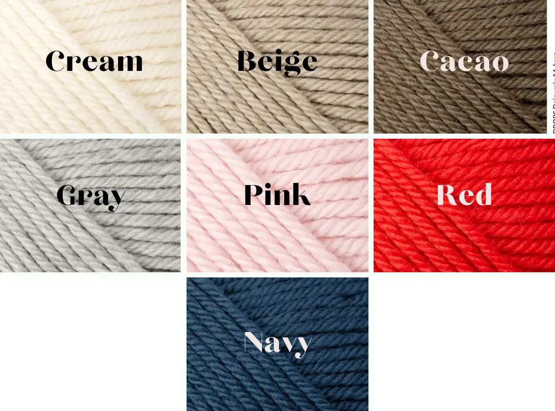 - Ecru, Beige, Cacao, Gray, Pink, Read, Peanut, Navy