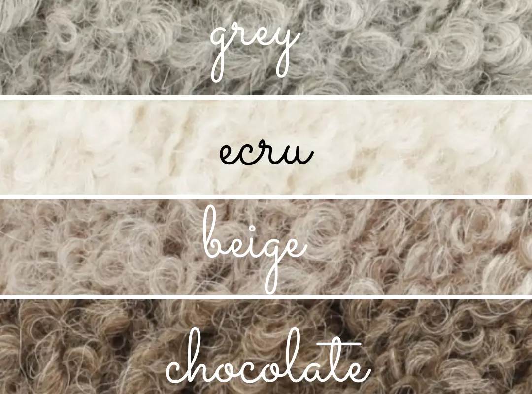 Cream, Beige, Cacao, Gray, Sea, Lavender, Sage, Powder, Pink.