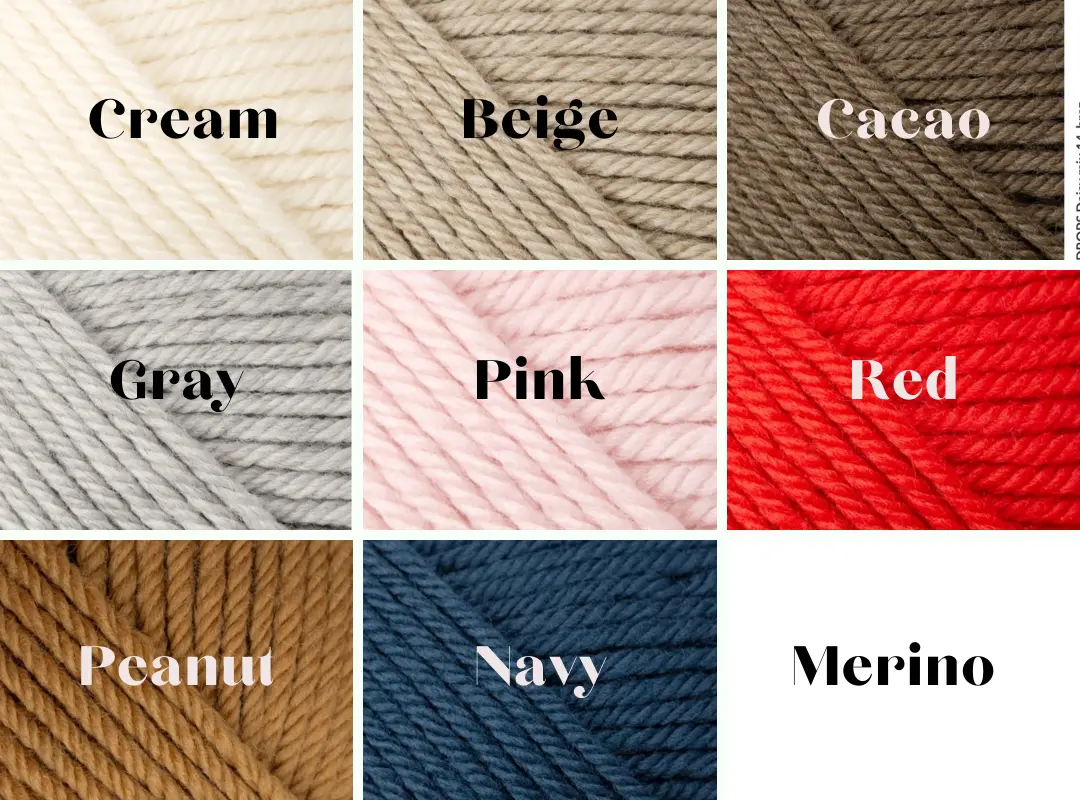 - Ecru, Beige, Cacao, Gray, Pink, Read, Peanut, Navy