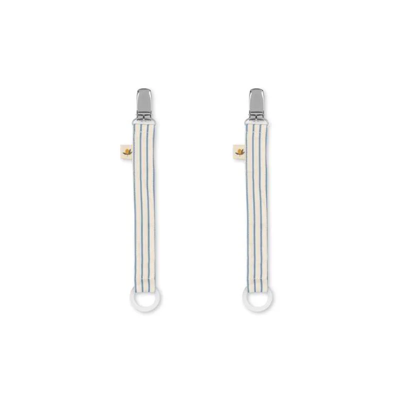 Konges Slojd 2 PACK Pacifier Strap STRIPE BLUIE to zestaw dwóch zawieszek do smoczków w eleganckim paskowanym wzorze. Dzięki nim smoczek Twojego dziecka zawsze pozostaje w zasięgu ręki, a ryzyko jego zgubienia znika.