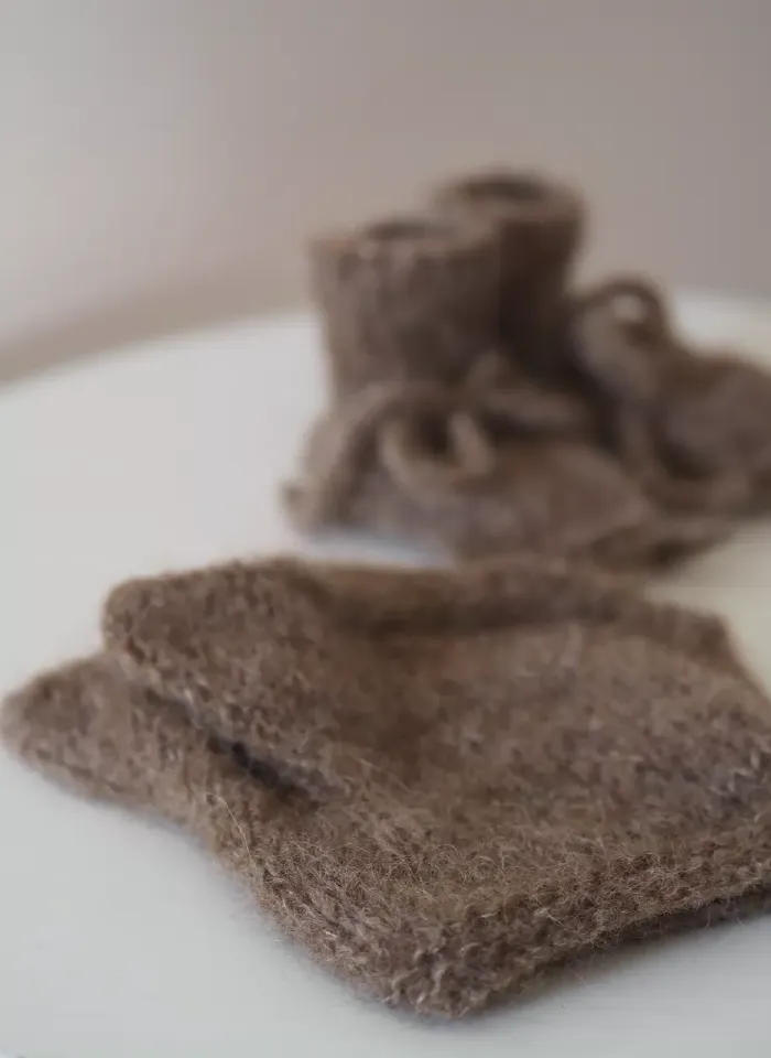- Ciepłe, wygodne buciki z wełny alpaki i jedwabiu