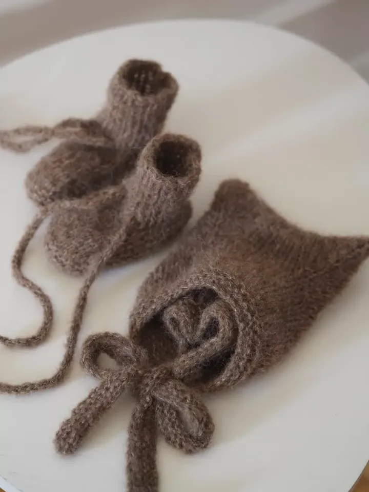 Wełniany zestaw niemowlęcy NATUREL.MINI z kolekcji premium to idealny wybór dla Mam szukających najwyższej jakości produktów z naturalnych materiałów, zapewniających ciepło i komfort. Zestaw składa się z bonetki z uroczymi uszkami kotka "Kitty" oraz bucików niemowlęcych – oba elementy wykonane ręcznie z delikatnej wełny alpaki z domieszką jedwabiu. Wełna alpaki to materiał doskonały dla delikatnej skóry dziecka, od pierwszych dni życia, zapewniając ochronę przed chłodem.